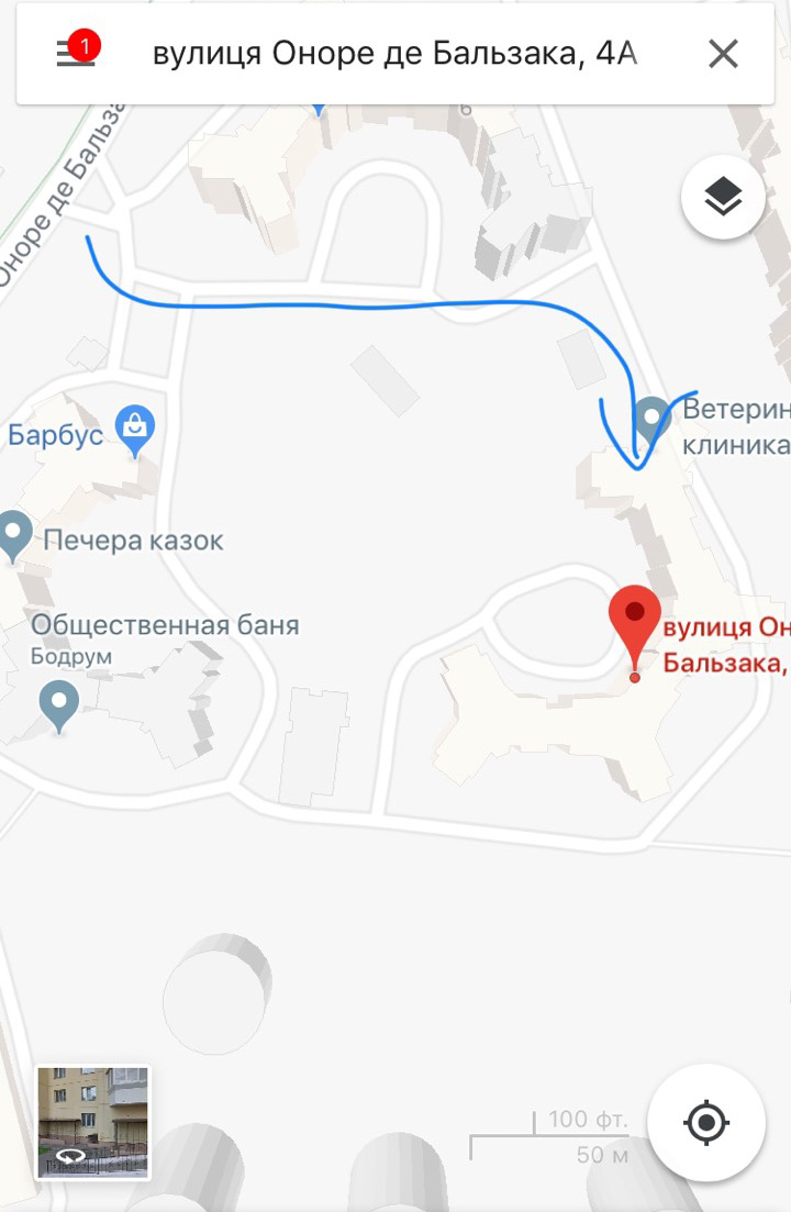 Наша клініка знаходиться на початку житлового масиву Троєщина, від нас зовсім не далеко Оболонь, Петрівка, Райдужний і Лісовий масиви. З Правого берега до нас легко можна дістатися будь-яким транспортом, який йде на Троєщину: вийти потрібно на початку пр-ту Ватутіна на зупинці Райдужна. Буде потрібно від сили п’ять хвилин, щоб дійти від зупинки до клініки — йти потрібно у напрямку житлових будинків. Якщо Ви їдете на своєму авто, то на самому повороті до нашої клініки з вул. Оноре де Бальзака висить дорожній знак — Вет Клініка.